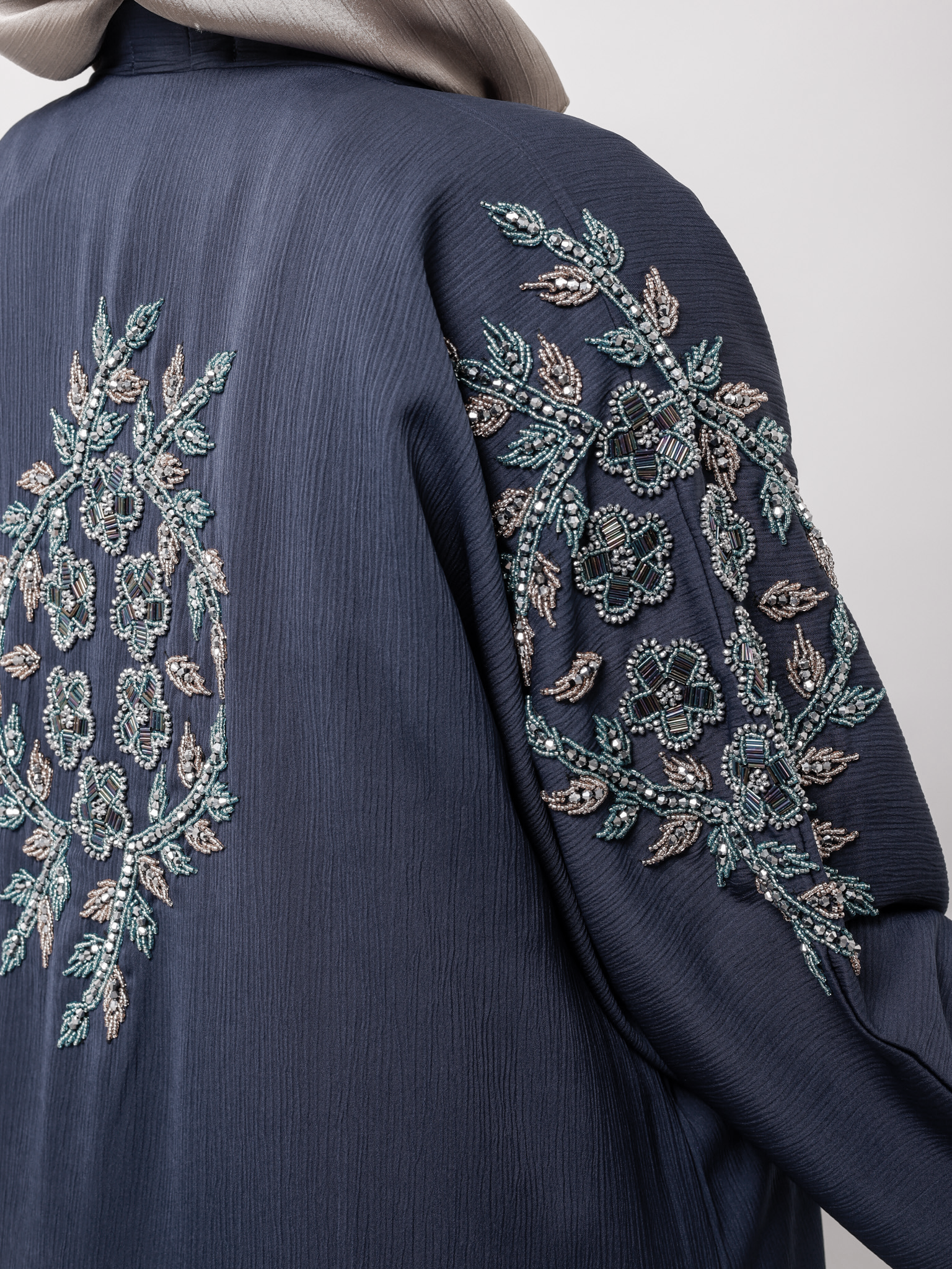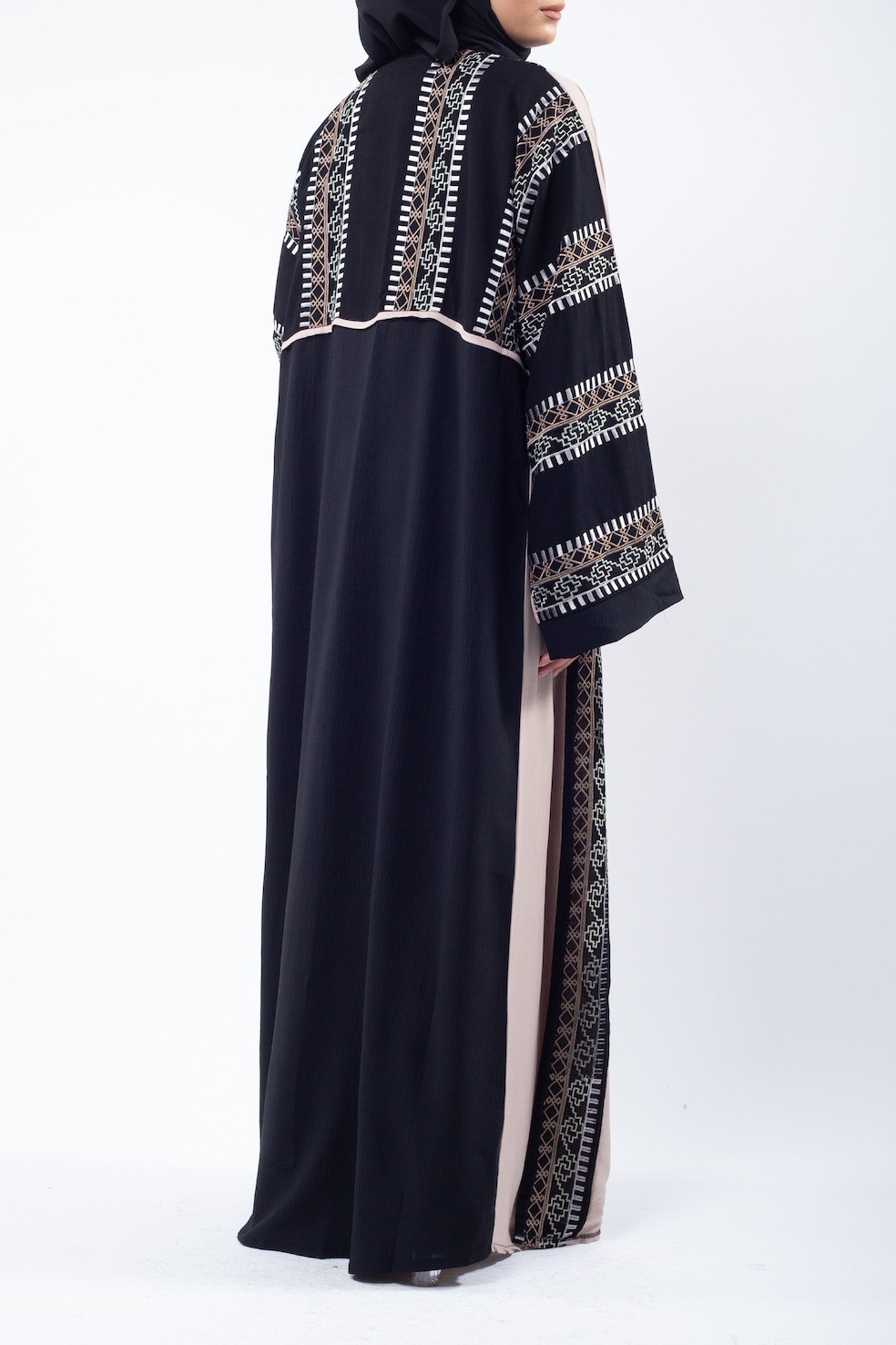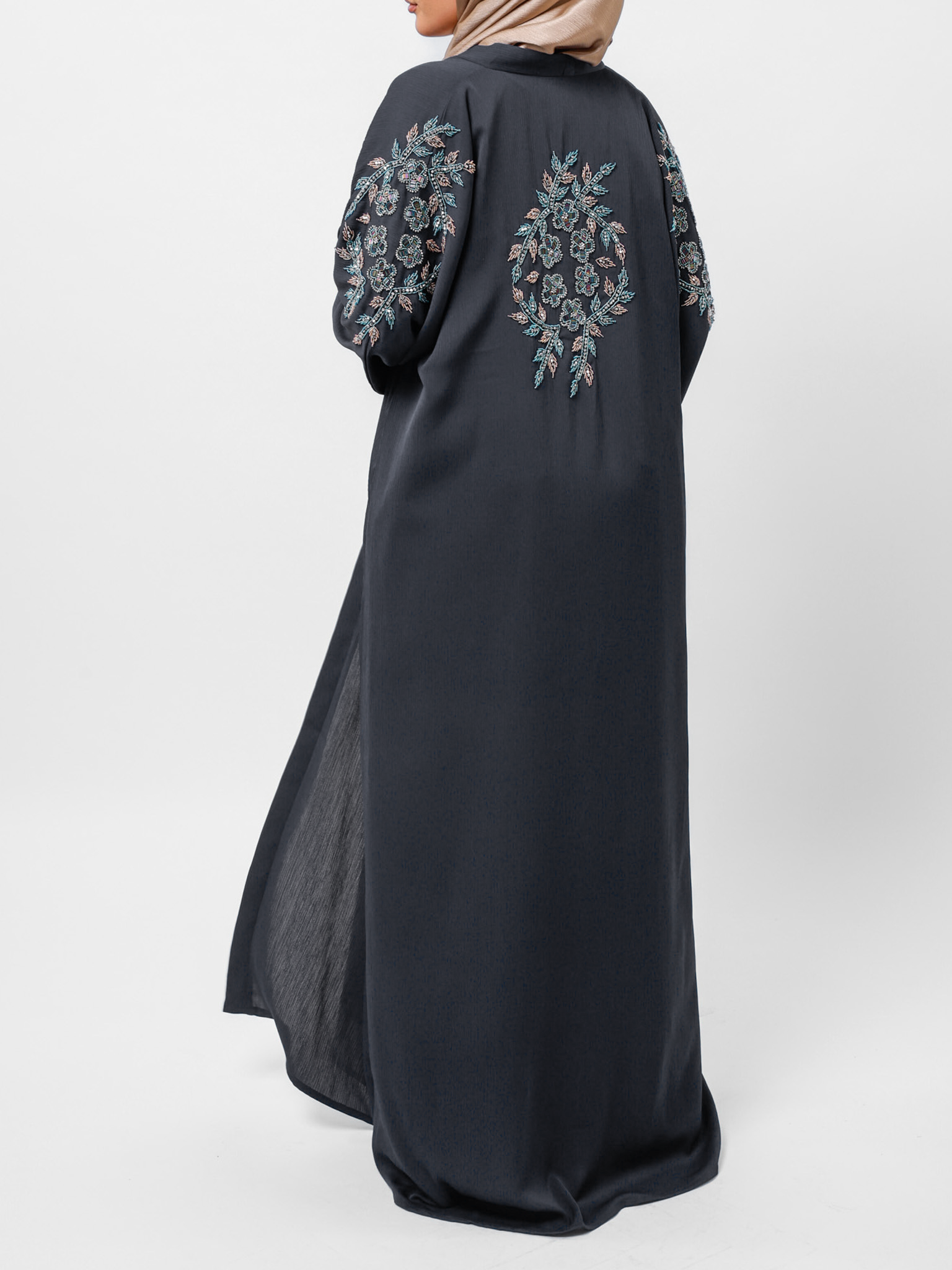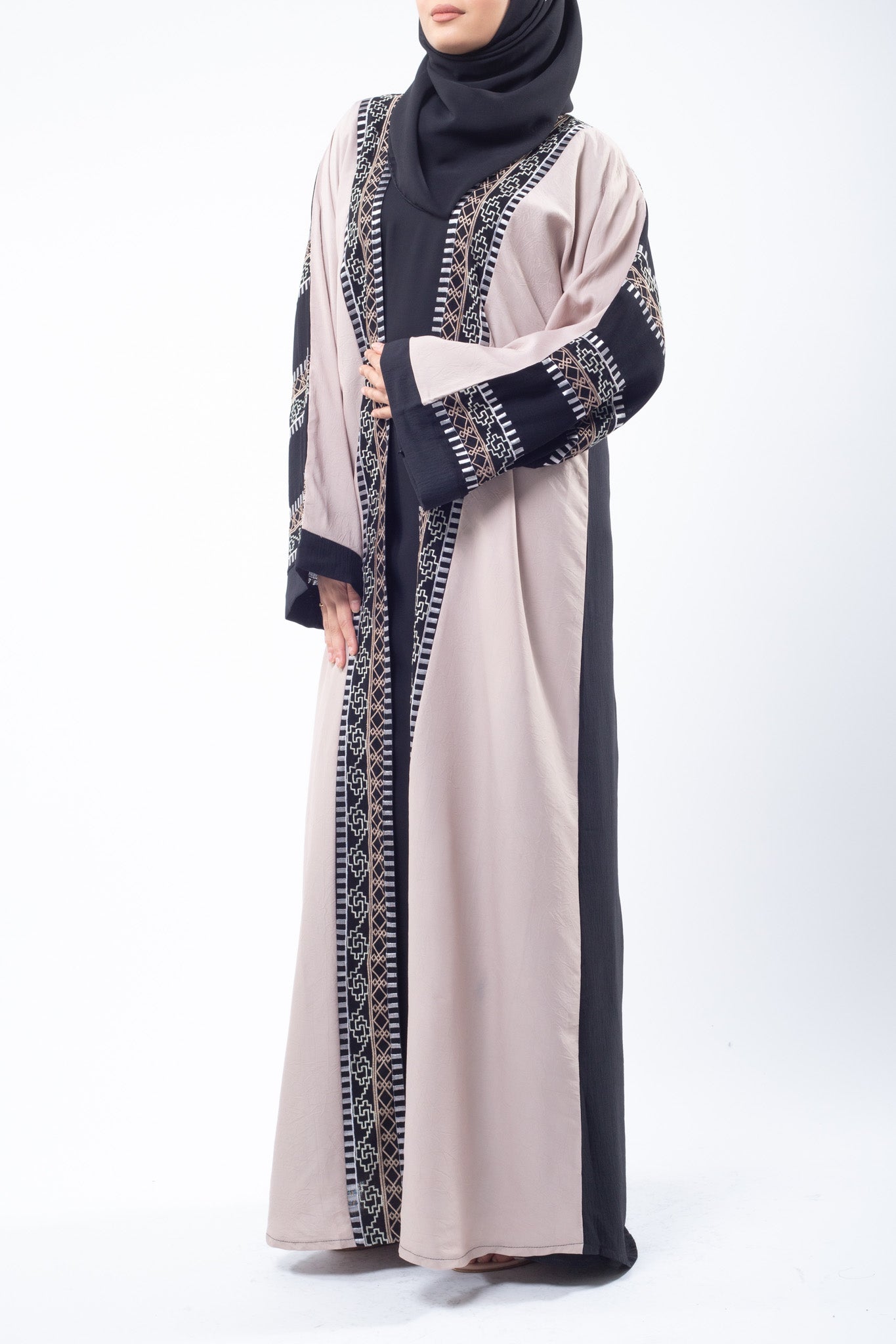 An abaya is a loose-fitting, full-length outer garment traditionally worn by Muslim women. It is designed to provide modesty while offering comfort and elegance. Abayas typically come in a variety of styles, fabrics, and colours, making them versatile for everyday wear, special occasions, or prayer. The abaya symbolises modesty and simplicity while allowing the wearer to express their unique sense of style through the different designs available.